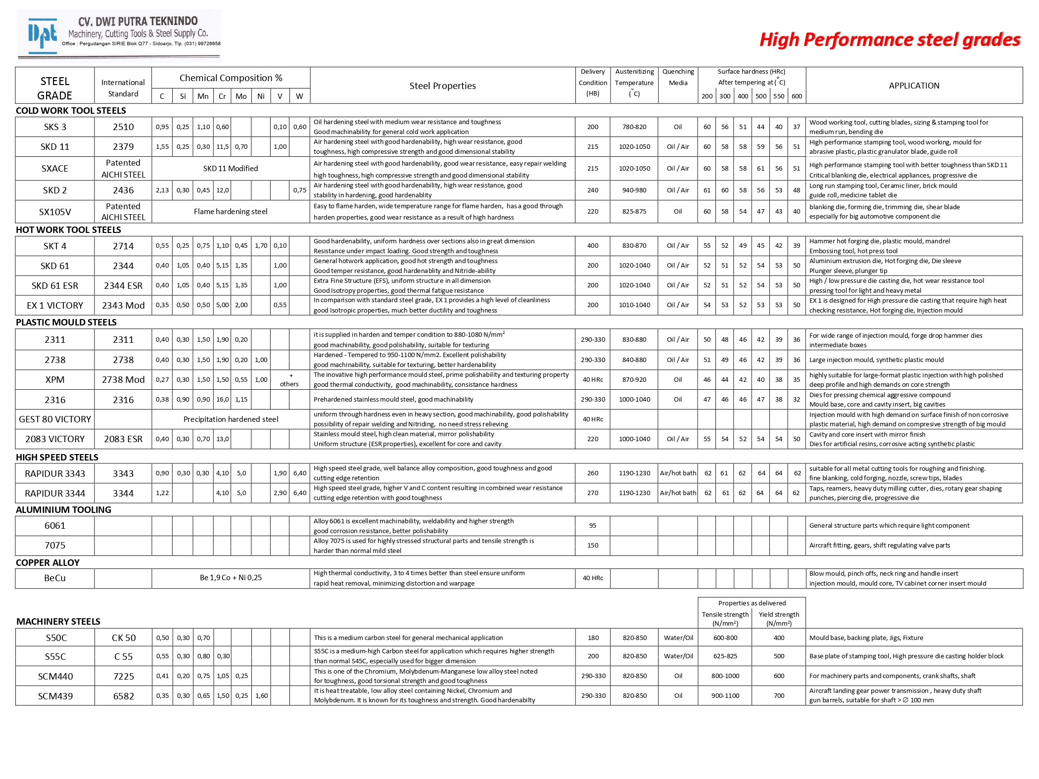• - We provide Special Steel according to the industry standards for mould & dies and metal fabrication, such as SKD11, S45/50C, 2311, 2316, and others.